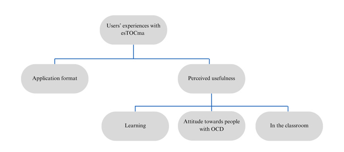 Two participants specified that esTOCma is “more adapted to students and not so much to adults” (P1, P3). Participant 15 shared an interesting implication of the app in classrooms: It fosters personal contact with students and helps prevent conflicts and school failure. Often, the causes of school failure are unknown, and the distress caused by OCD could be at the root of some of these cases.